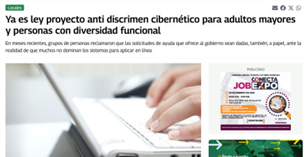 Proyecto de ley sobre anti discrimen cibernético para adultos mayores y personas con diversidad funcional